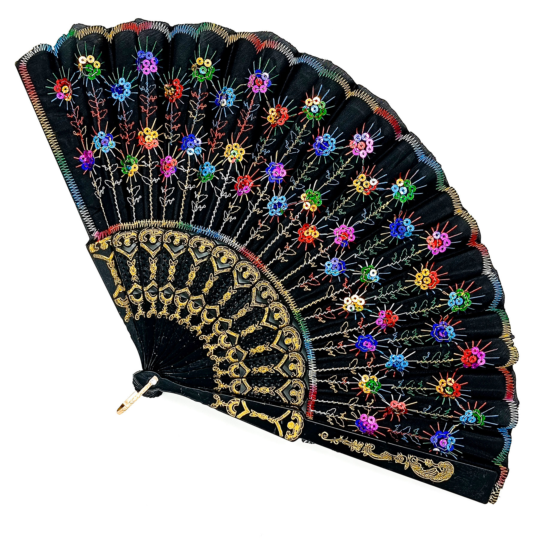 Leque Simples Colorido Cigana Com Paete E Renda