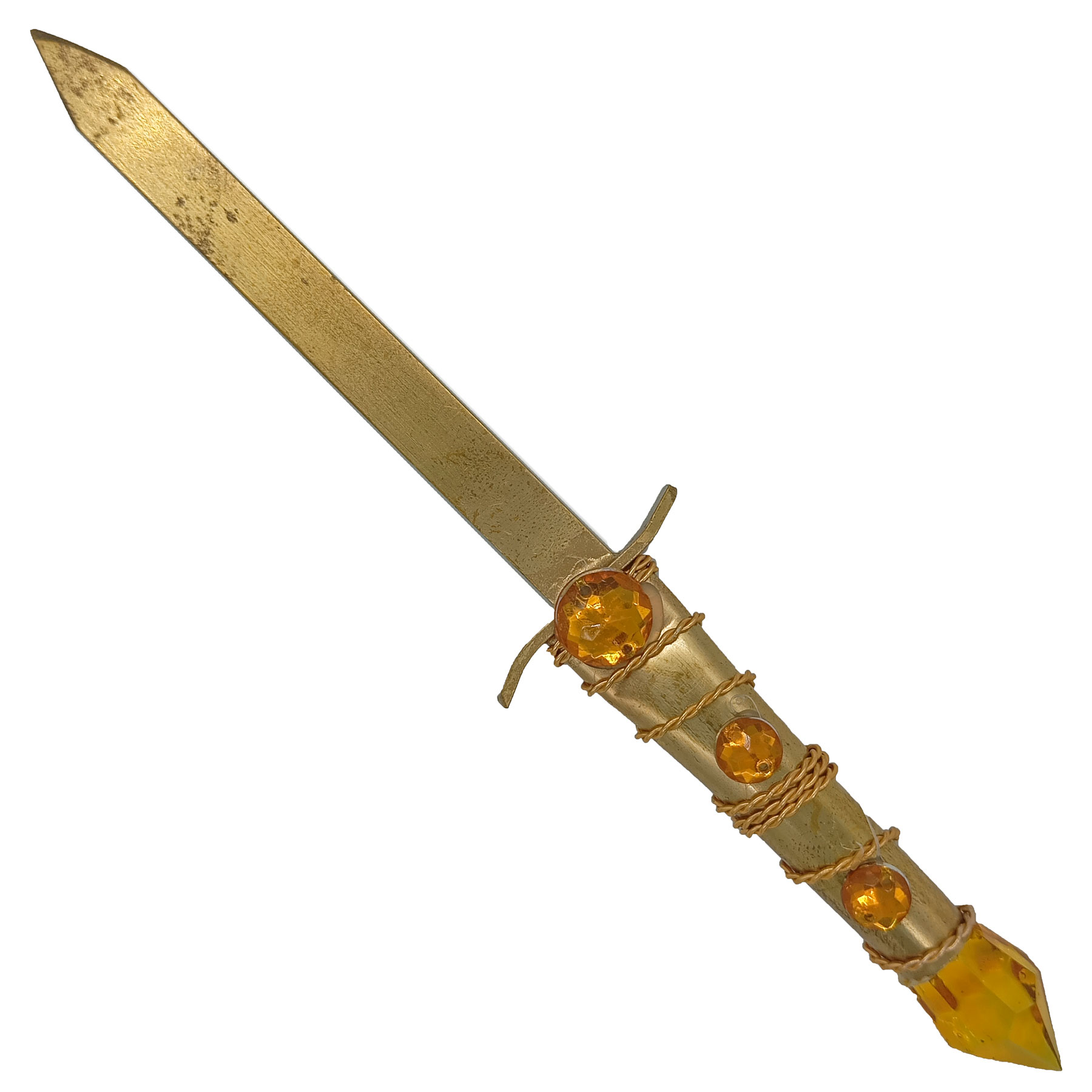 Faca Punhal Médio S/ Corte P/ Assentamento C/ Pedraria Amarelo