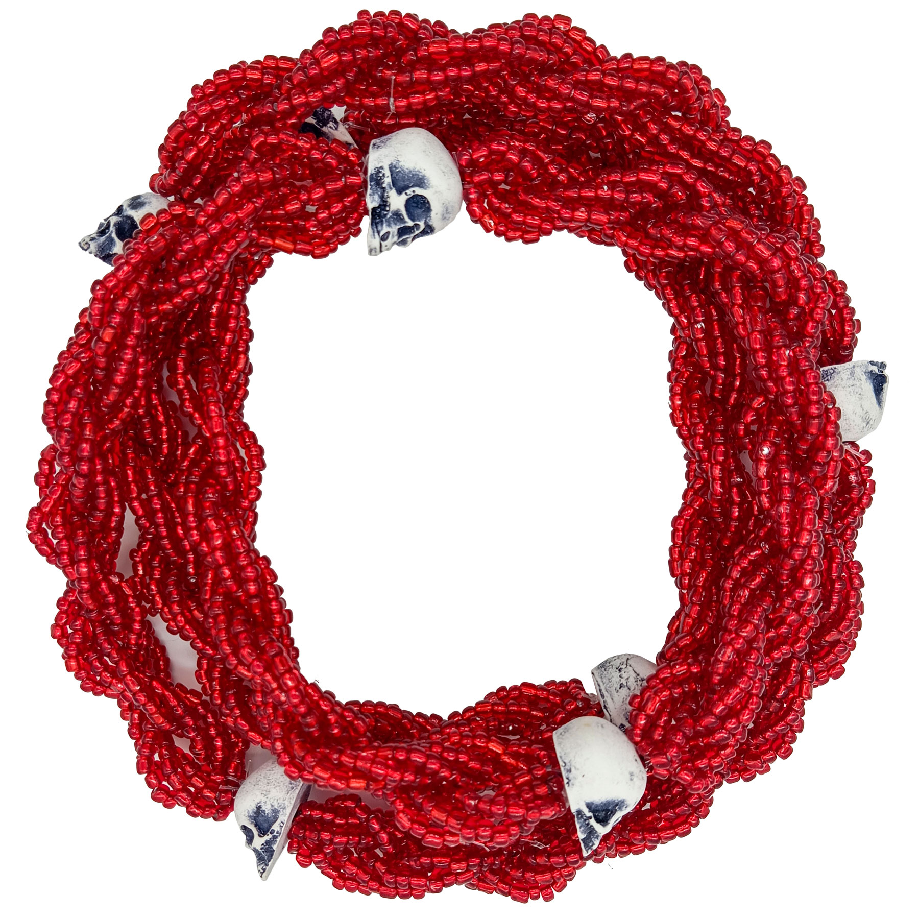 Guia Missanga Brajá Torcido Caveira Vermelho Miçanga Cristal 8 Fios com 7 Firmas