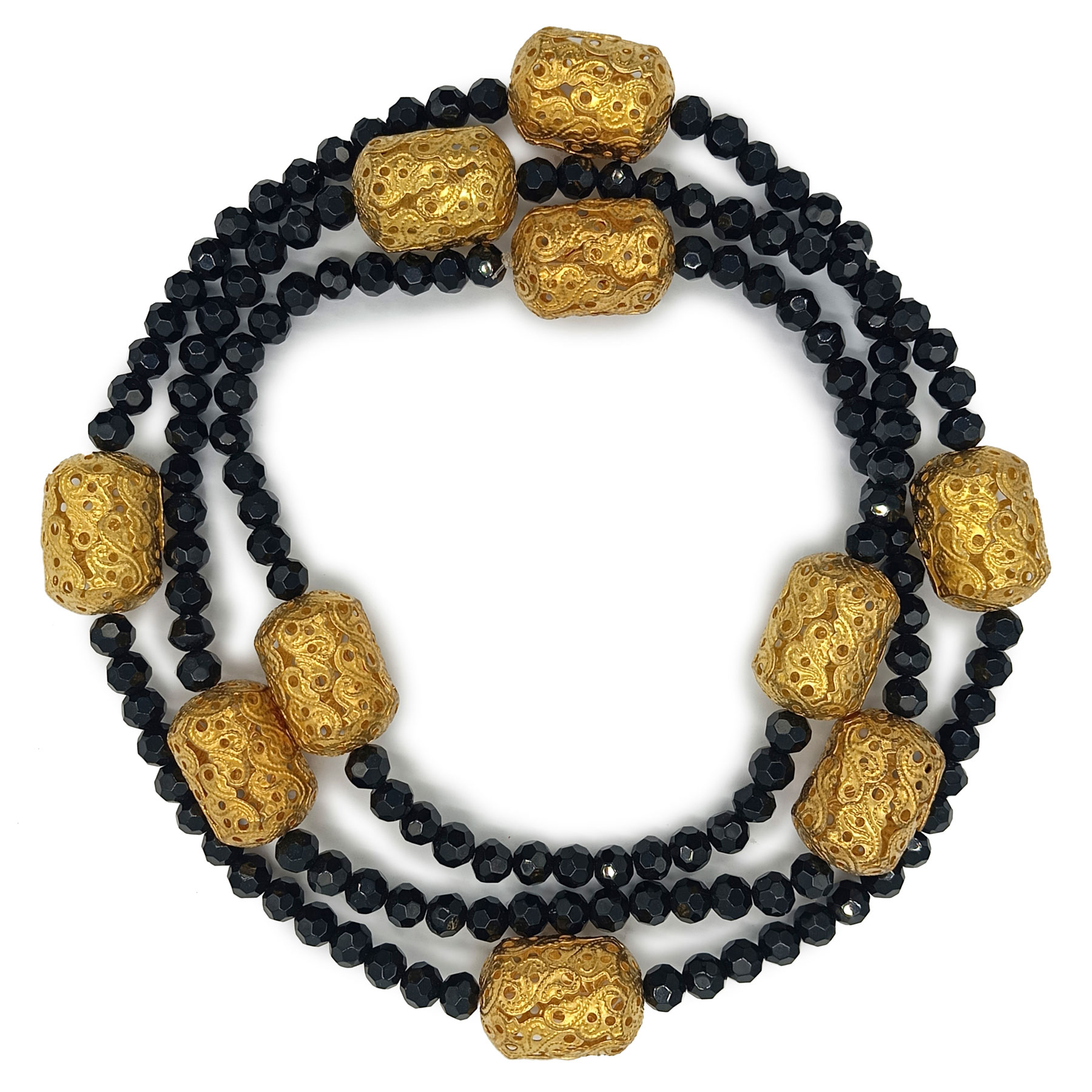 Guia de Cristal Preto C/ Entremeio Dourado Ritual Umbanda Candomblé