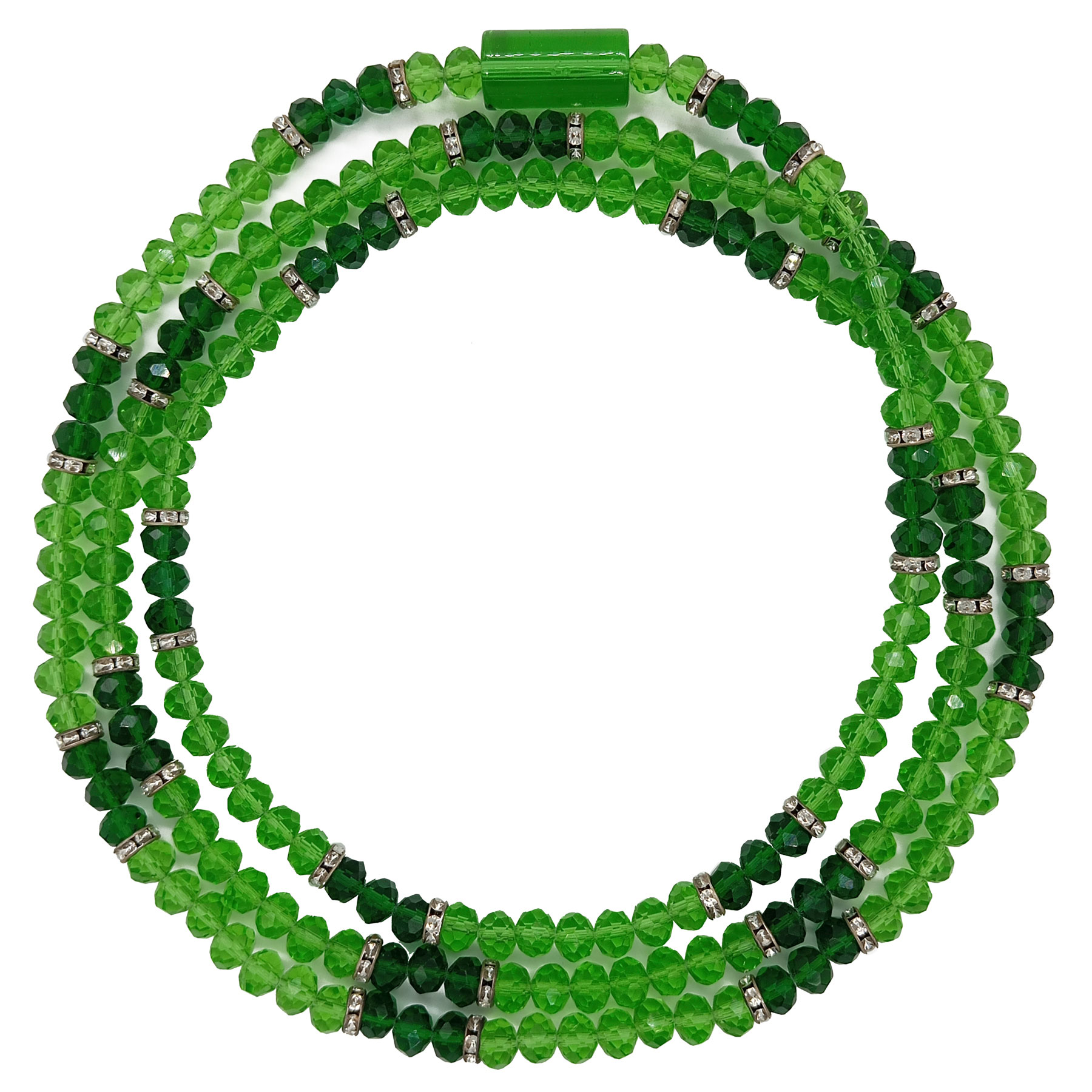 Guia de Cristal C/ Entremeios Strass e Firma Verde Claro/Verde Escuro